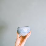 Each piece is made using a custom blend* of stoneware, thrown and trimmed by wheel, and subsequently carved and etched by hand to further develop the concept and character behind the collection.